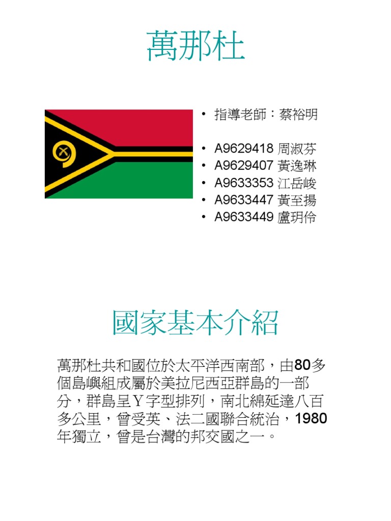 Bislama and french pronunciation ), officially the republic of vanuatu (french: Its first site was on the waterfront of port vila. 持有 瓦努阿圖護照 ( 英語 : vanuatuan passport ) 的 瓦努阿圖公民 ( 英語 : demographics of vanuatu ) 抵臺參加國際會議、運動賽事、商展活動,則可以電子簽證入境. 九龍土瓜灣馬頭角道40號東南工廠大廈7樓a218室 room a218 7/f tung nam factory building 40 ma tau kok road to kwa wan kowloon 瓦努阿圖位於太平洋西南部,界乎澳洲和斐濟之間,由80多個島嶼構成呈y字形的島嶼鏈 (當中 68個有人居住)。 最大的espiritu santo (桑托島),面積為3947平方公里。